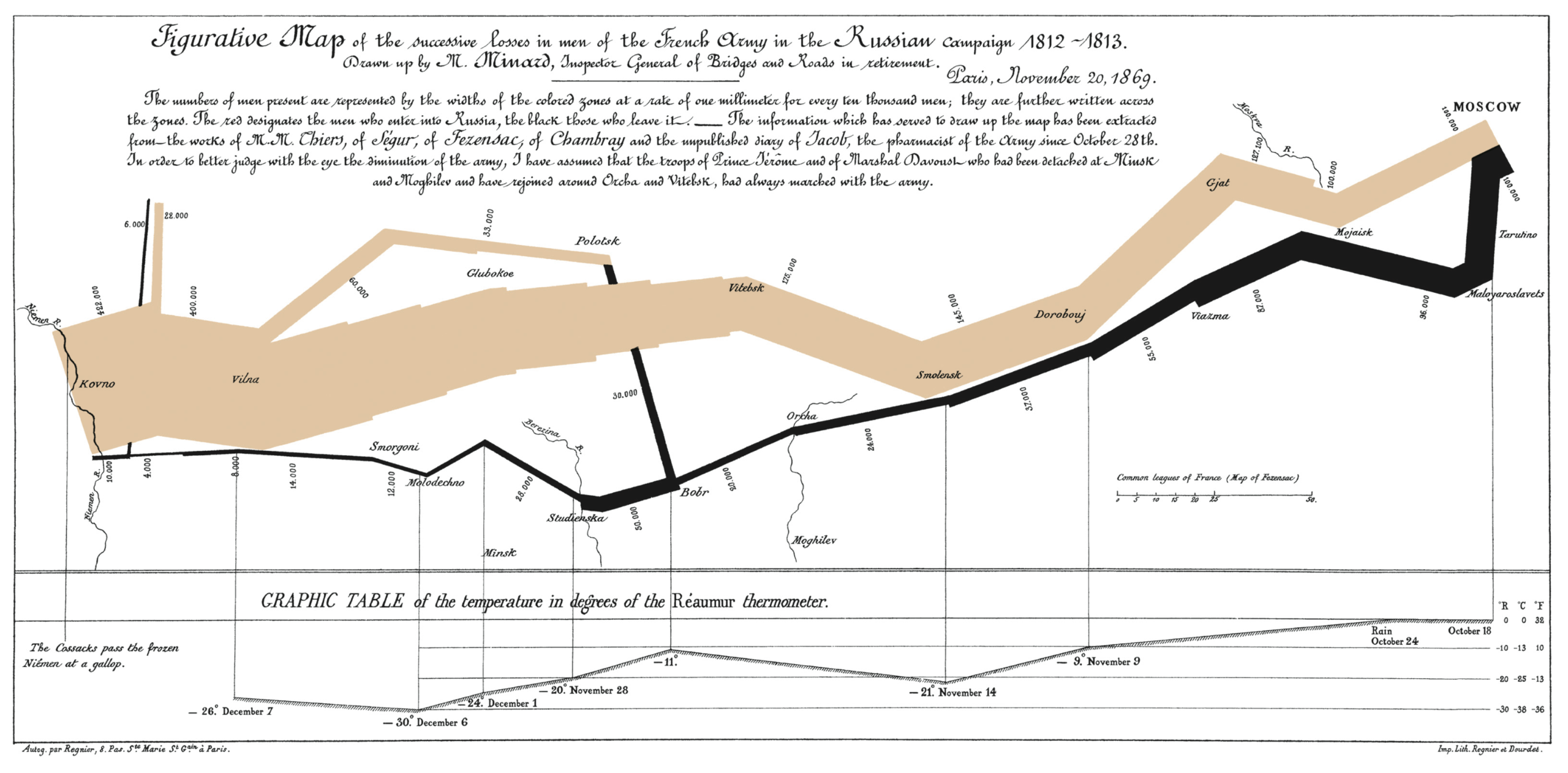 {% fullwidth 'assets/img/napoleons-march.png' 'Napoleon's March *(Edward Tufte’s English translation)*' %}